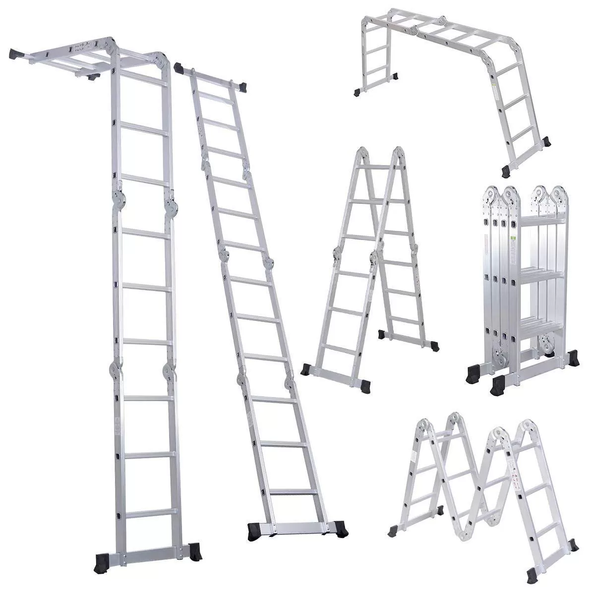 Folding Telescoping Ladder Aluminium Multi-Purpose 7 in 1 Heavy Duty Combination 12.5/15.5/18.5 Feet