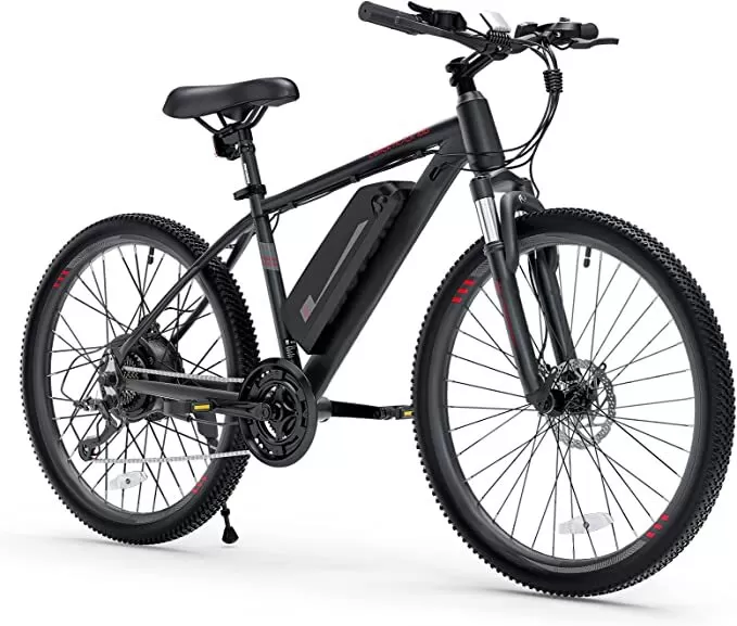 26'' Mountain Ebike 350W 36V/10.4AH Removable Lithium Battery, 2X Faster Charge Shimano 21 Speed and LCD Smart Meter